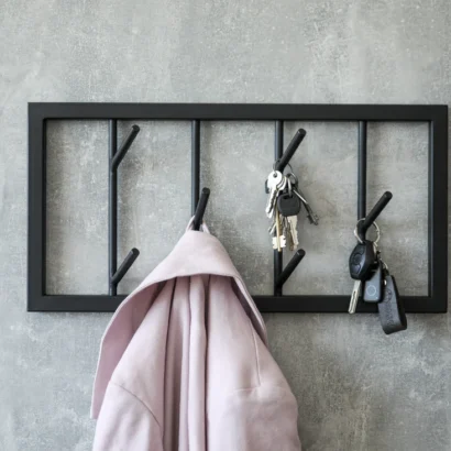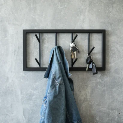 - Wall clothes hangers are designed for strong outwear, umbrellas, bags and other things.