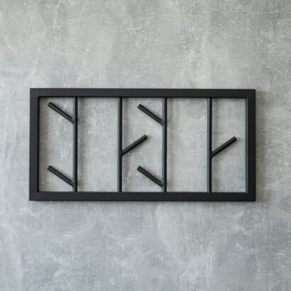 Decorative metal wall hanger with hooks to save space in the hallway